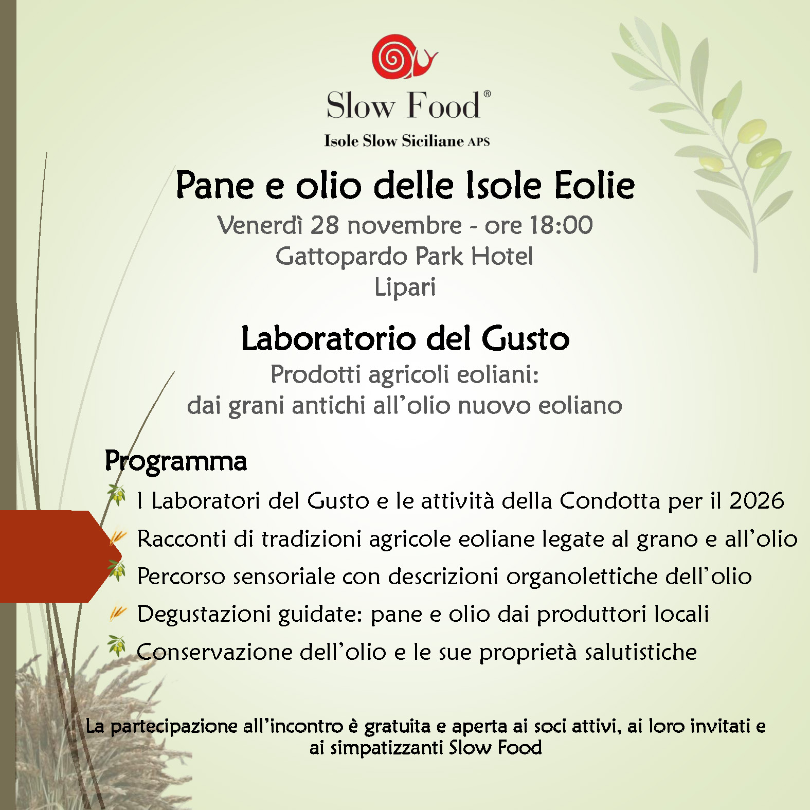 Laboratorio del gusto: pane e olio delle Isole Eolie