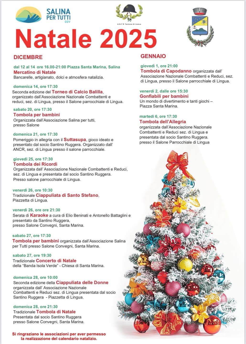 Tombola dei Ricordi, 25 dicembre, 17:30, Salone Parrocchiale di Lingua; ANCR – Sez. di Lingua, Presenta Santino Ruggera.